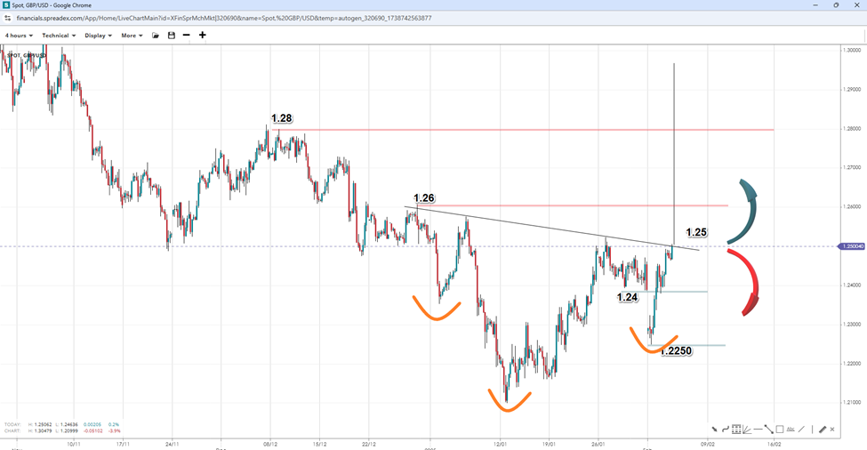 It has been weeks since the markets began expecting the resumption of rate cuts as inflation figures have moderated and economic growth has slowed. Paradoxically, this has over the past month while weighing on the pound. Cable has been trending lower since November, with persistent inflationary pressures in the US contrasting with the UK's, paving the way for the BOE to catch up with the ECB.