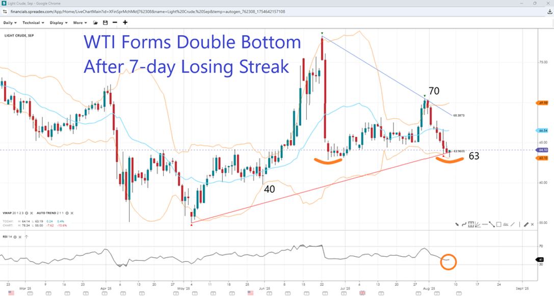 Oil prices have dropped 6 days in a row as markets seemingly focus on oversupply concerns after OPEC raised its oil production targets and a week full of geopolitical events, including advances in tariff negotiations and the prospect of a resolution to the war in Ukraine.