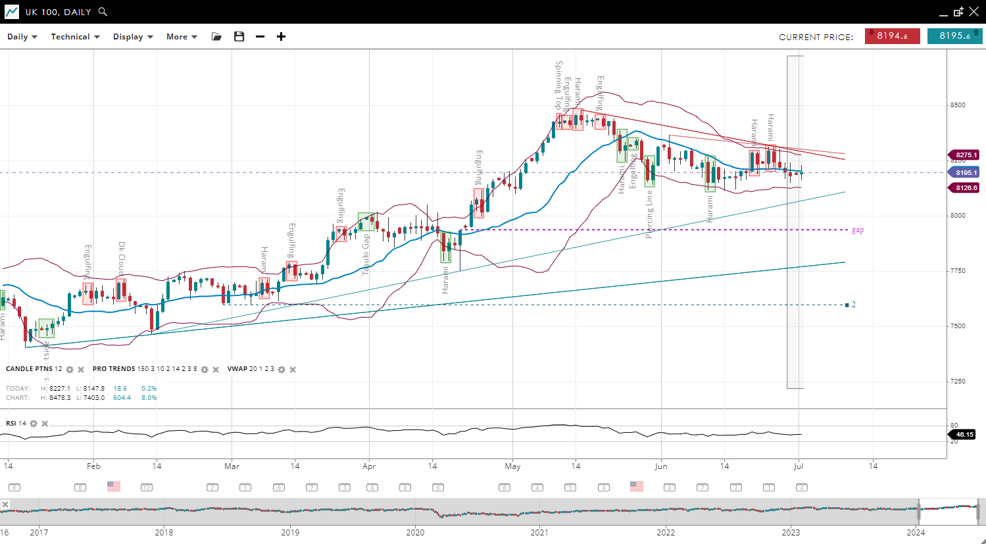 UK 100 | Bullish | Consolidation | 8195 | 8195.2 | 8126 | 8275 | 46 |