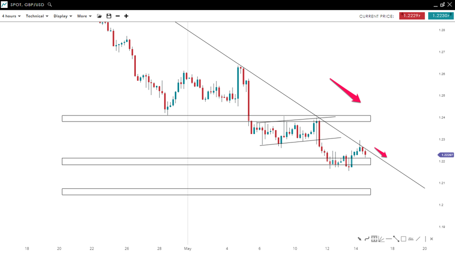 After breaking the bearish flag to the downside, Cable faced strong support at 1.22, which led to a corrective move higher towards a bearish trend line. If the price respects this line, sellers could push the price again to the downside toward the 1.2060 possible support level.