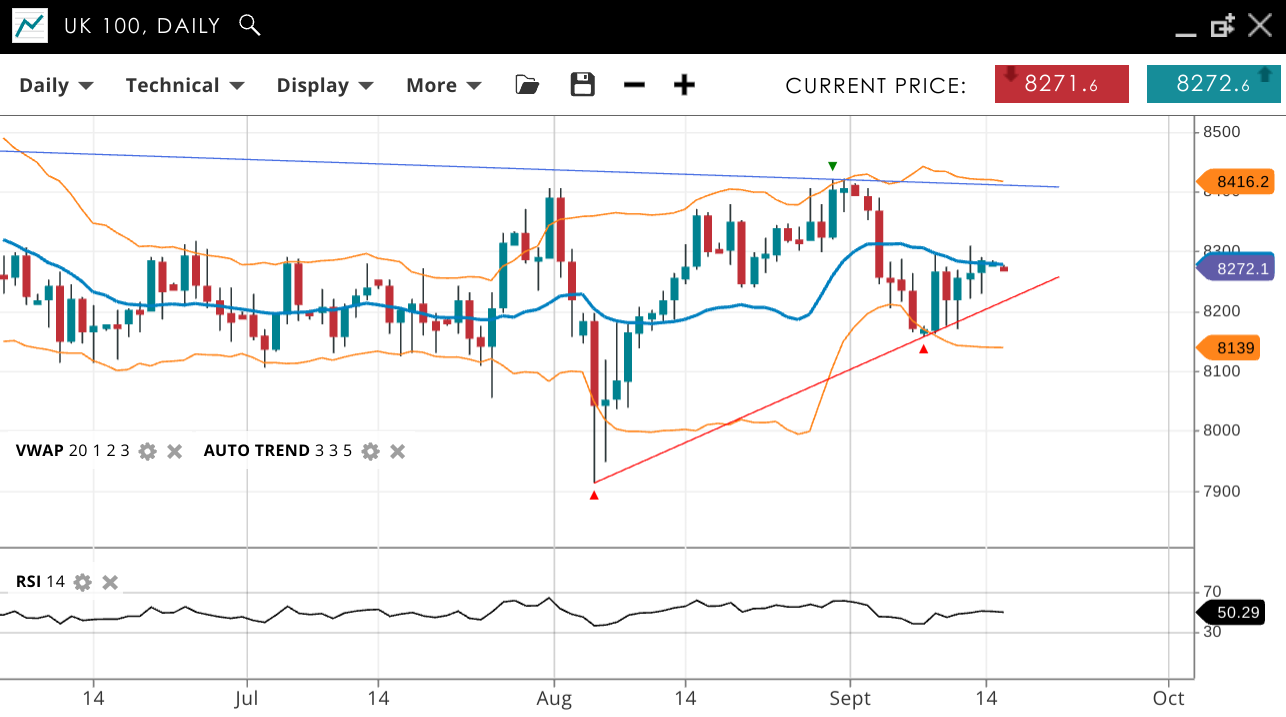 UK 100 | Neutral | Consolidation | 8272 | 8275 | 8139 | 8416 | 50 |