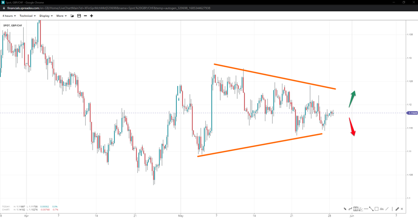 GBP/CHF might break higher should a triangle pattern be completed at 1.1144, clearing the path toward 1.1278. In between, the local swing at 1.1240 must give in to potential pressure. If bears take control of the low, we could see further pullbacks towards 1.1092 with little chance of 1.1070.