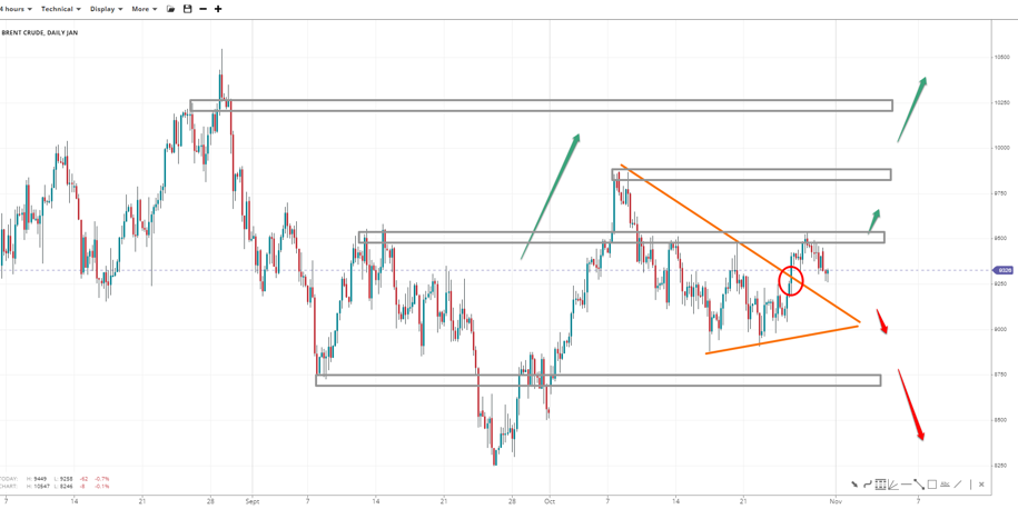 Brent price action reminds a pennant, having resumed the upward trend after breaking the upper trendline. The breakout level is now support and has been retested for a potential continuation above 95.00 and towards the 99.00 handle. Above 100.00, there is resistance at 102.50 if bulls fail to extend gains towards 105.00. On the flip side, falling below the apex near 90.00 might clear the way to 87.50 and the low of 82.50.
