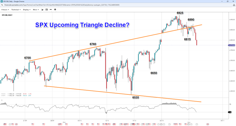SPX500 Triangle Formation Points to Decline