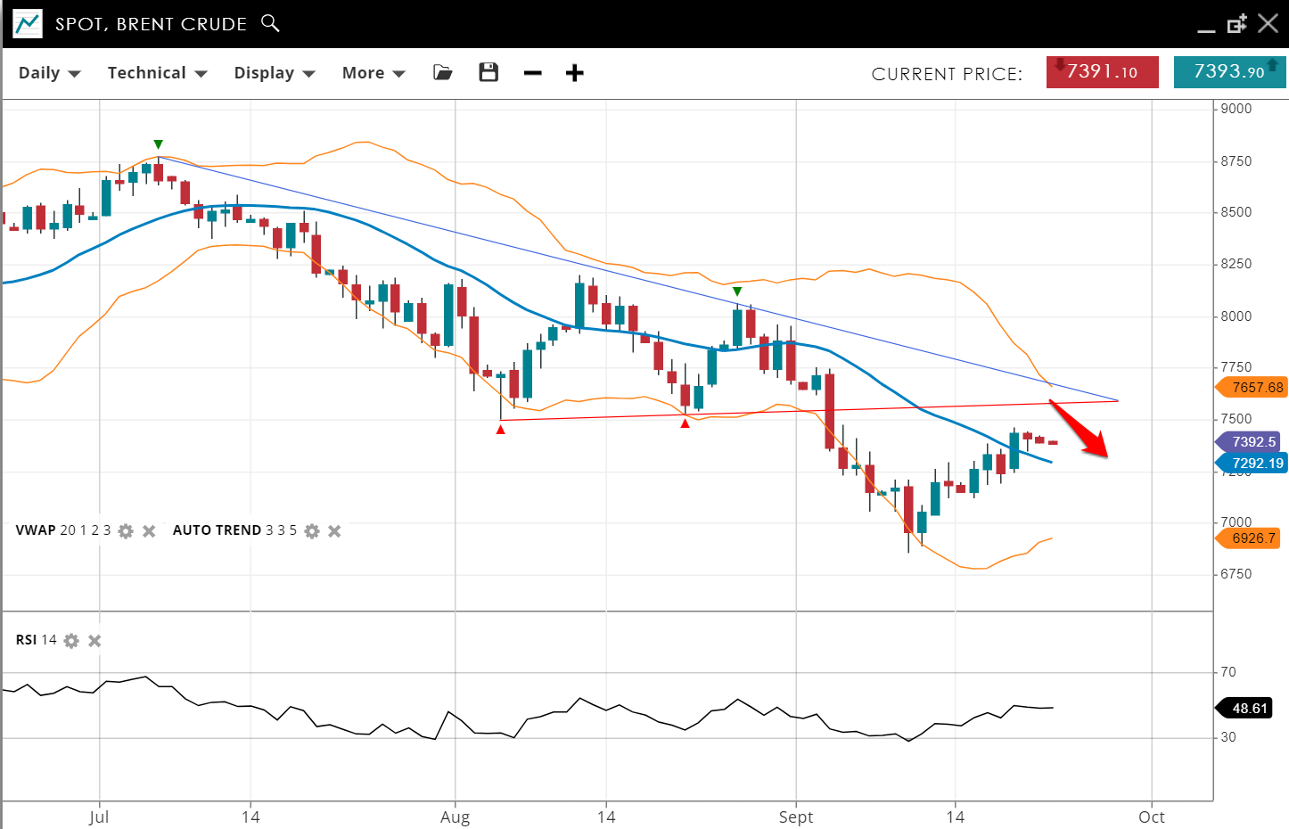 Brent Crude Bearish Corrective 73.92 72.92 69.26 76.57 48